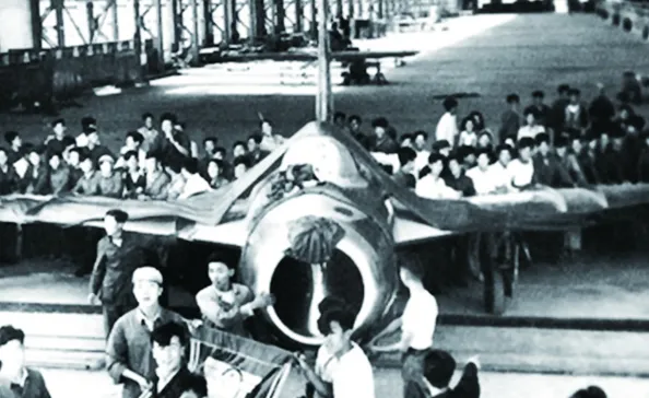 1951年6月,新中国建设了自己的飞机制造厂——国营112厂。依据苏联专家的建议,工厂采用“四阶段平行交叉作业”的快速试制方法。歼-5研制从1954年开始,1955年4月8日投入装配试制;1956年2月整个飞机的14719种253550个零件全部制造完毕;1956年7月13日完成第一架全部采用自制零件的飞机总装。1956年7月19日,歼-5原型机由吴克明驾驶首次试飞成功。