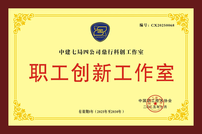 2025年7月,中建七局四公司鼎行(高宇甲)科创工作室被命名为“中国职工技术协会职工创新工作室”。