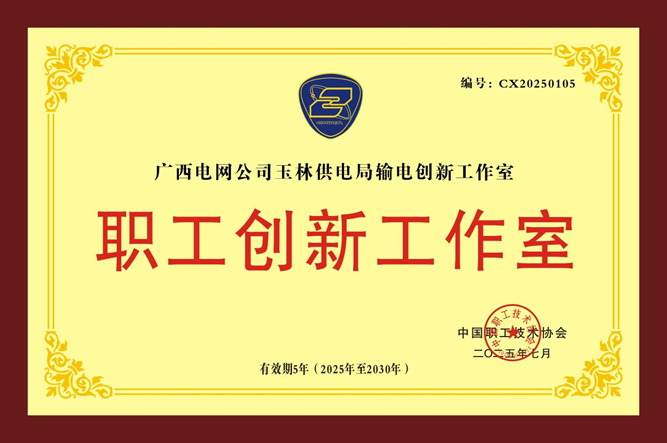 2025年7月,南方电网广西电网公司玉林供电局输电创新工作室被命名为“中国职工技术协会职工创新工作室”。