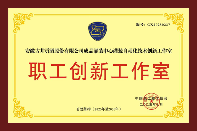 2025年7月,安徽古井贡酒股份有限公司成品灌装中心自动化技术创新工作室被命名为“中国职工技术协会职工创新工作室”。